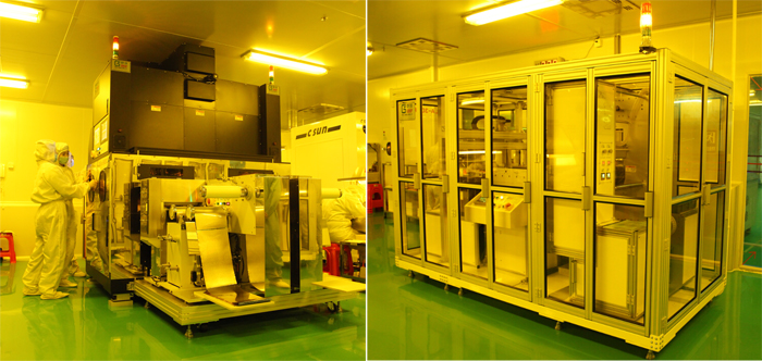 經(jīng)過輾轉(zhuǎn)的運(yùn)輸,馬不停蹄地回到了“娘家“,左圖為雙列單面自動(dòng)曝光機(jī),右圖為片對(duì)卷雙面水潤壓膜機(jī)。