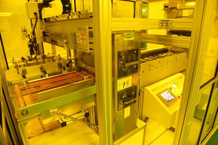 當(dāng)然,另外這位小伙伴的作用也不容小覷。它的名字叫片對(duì)卷雙面水潤壓膜機(jī),顧名思義,就是將卷狀的膜壓在FPC基板上。相較于以前的手工片狀貼膜,卷狀的壓膜不需要使用刀片割除板邊多余的干膜,產(chǎn)品品質(zhì)也更好了。同時(shí),也減少了對(duì)人工的需求。最重要的,效率妥妥提升了3倍喔~