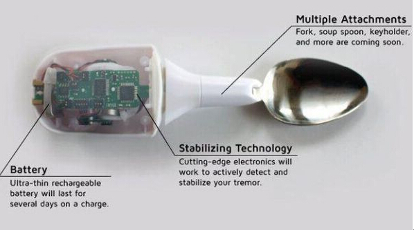 帕金森勺可通過感知和預(yù)測帕金森患者的手部抖動,對勺子的平衡進(jìn)行調(diào)節(jié)。能有效提高帕金森病人的生活質(zhì)量。這兩個設(shè)備立足于提高特定病人的生活質(zhì)量。