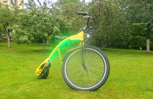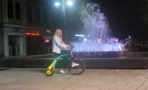 這款名為Esnail的電動自行車,如果站在遠(yuǎn)處看,乍一眼還以為沒有后輪。事實上,它的后輪非常小,也正是這樣的獨特設(shè)計,使得這款自行車重量僅為18千克,整個車身非常短,只有1.4米左右,便于攜帶。