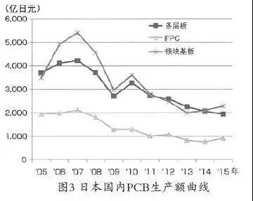 UTC用銅箔應(yīng)用在多層板,F(xiàn)PC,模塊板(IC載板)方面的生產(chǎn)額如圖3所示,從圖3可以看出這幾類電路板又基本上是減緩下降的傾向,從圖2 UTC用超薄銅箔生產(chǎn)額來看也并不認(rèn)為會快速增長。
