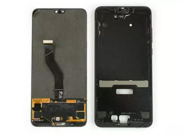 由于P20 Pro缺少Face ID和虹膜掃描硬件,所以拆下來的屏幕內(nèi)的元器件也不是很多。