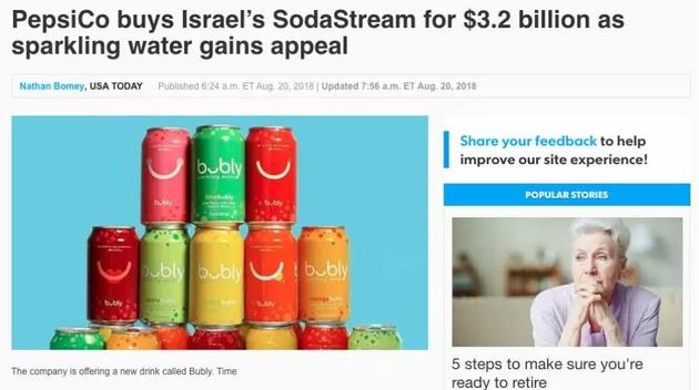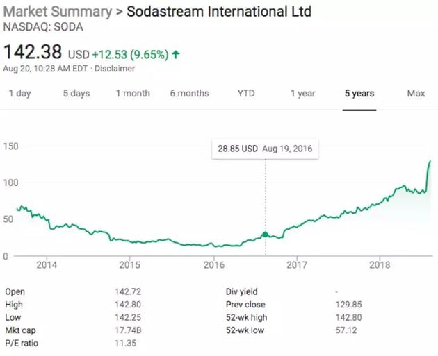 CNN的報(bào)道中稱,收購(gòu)SodaStream將進(jìn)一步提升百事公司對(duì)健康產(chǎn)品的定義。此外,自從SodaStream將自身品牌重新定位為一家蘇打水公司后,股價(jià)在過去的兩年中累計(jì)飆升了逾320%。