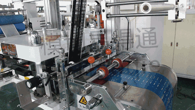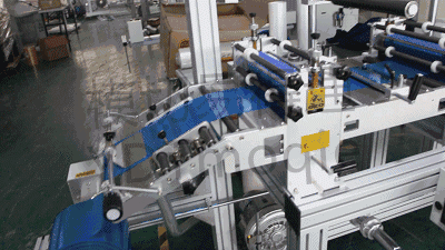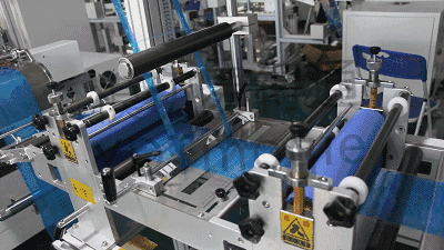 8、進入三工位貼合機排廢整版材料外框后收卷成型。