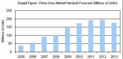 從iSuppli的報(bào)告數(shù)據(jù)里,就能看得出來(lái)當(dāng)年山寨手機(jī)有多猛:2009年中國(guó)賣了1.45億部山寨手機(jī),比前一年大漲了43.6%,相當(dāng)于2005年的4倍。搶占了全球20%的市場(chǎng)。
