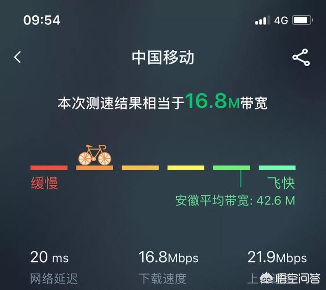 更為關(guān)鍵的我們所說的4G網(wǎng)絡(luò)其實(shí)是3.9G,而現(xiàn)在的4G+才是真正的4G,它的下行峰值為300Mbps,上行峰值也能夠達(dá)到50Mbps。這個(gè)速度,才能滿足消費(fèi)者的日常使用。我們可以測(cè)試一下目前4G網(wǎng)絡(luò)的正常值,以移動(dòng)為例: