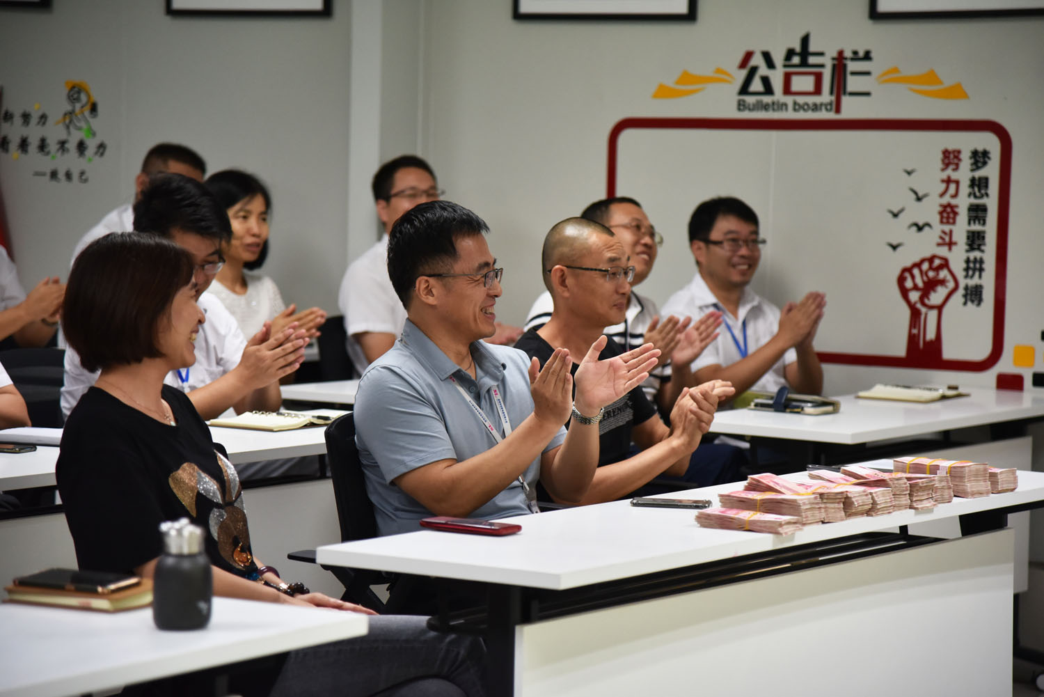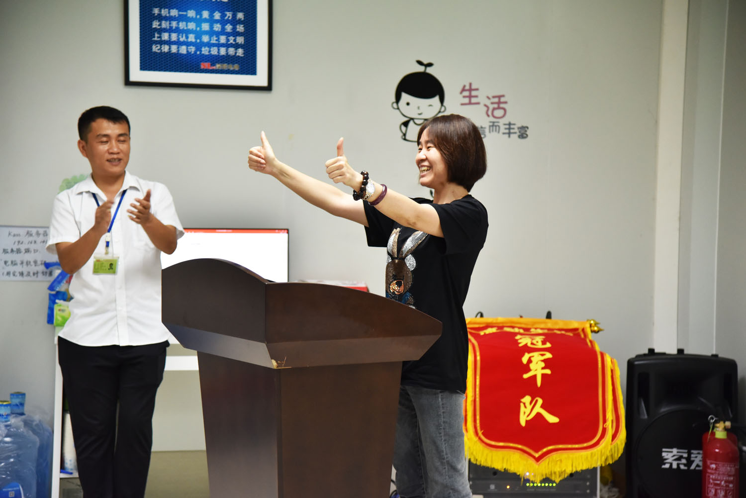 最后就是我們各個(gè)戰(zhàn)隊(duì)的頒獎(jiǎng)儀式了。其中一級(jí)KPI,8月達(dá)成獎(jiǎng)勵(lì)目標(biāo)的隊(duì)伍每人獎(jiǎng)勵(lì)3000元,達(dá)成挑戰(zhàn)目標(biāo)的隊(duì)伍每人獎(jiǎng)勵(lì)5000元;此次二級(jí)KPI達(dá)成目標(biāo)的冠軍是最強(qiáng)隊(duì),每人獎(jiǎng)勵(lì)600元以及全體部門聚餐和錦旗榮譽(yù);亞軍:神鋒隊(duì),每人獎(jiǎng)勵(lì)400元以及全體部門聚餐和錦旗榮譽(yù);沖鋒隊(duì)、快壓隊(duì)、夢(mèng)想隊(duì)、精英隊(duì)也拿到了屬于自己的那份榮譽(yù)!