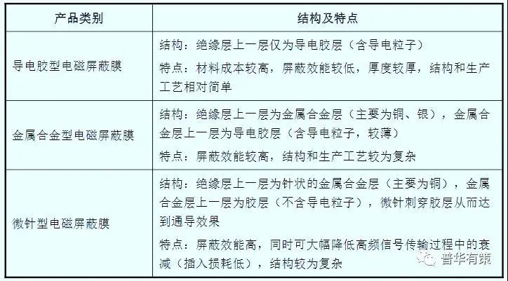 電磁屏蔽膜的類別目前,電磁屏蔽膜主要有三種結(jié)構(gòu),分別為導電膠型、金屬合金型和微針型。電磁屏蔽膜的類別