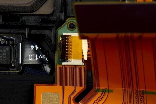 電池有一個(gè)專門的“承托架”墊起,取下電池和“承托架”即可看到電池下方有一大片 BTB 連接軟板。這種設(shè)計(jì)是索尼手機(jī)特有的“八爪魚(yú)式”軟板。指紋模塊軟板小編覺(jué)得這個(gè)造型真的很絕~