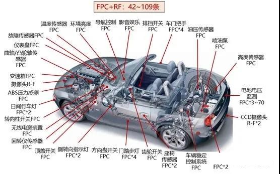 更為重要的是新能源汽車中PCB使用量將是傳統(tǒng)汽車的5-8倍,汽車FPC市場(chǎng)將新能源汽車滲透率的提升而得到快速增長(zhǎng)。