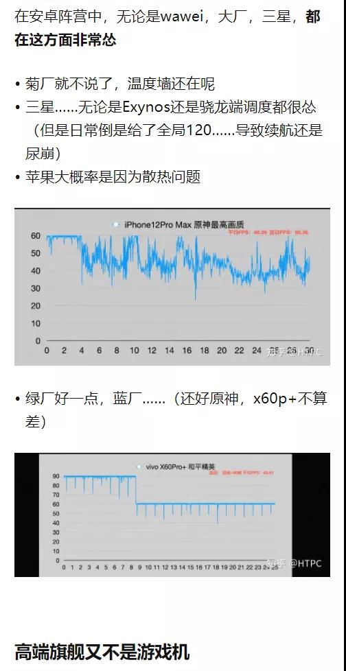 而且也有網(wǎng)友測試了其他品牌的旗艦機型,發(fā)現(xiàn)也有降頻保溫度的情況: