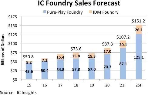 預計今年的代工總銷售額將首次超過1000億美元大關(guān),并繼續(xù)以強勁的11.6%的同比速度增長,到2025年總代工銷售額預計將達到1512億美元。