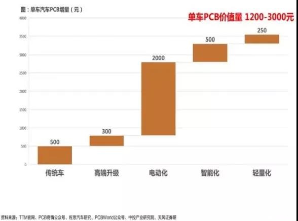 汽車PCB增長動力來自于新能源汽車的滲透&單車PCB價值量提升。