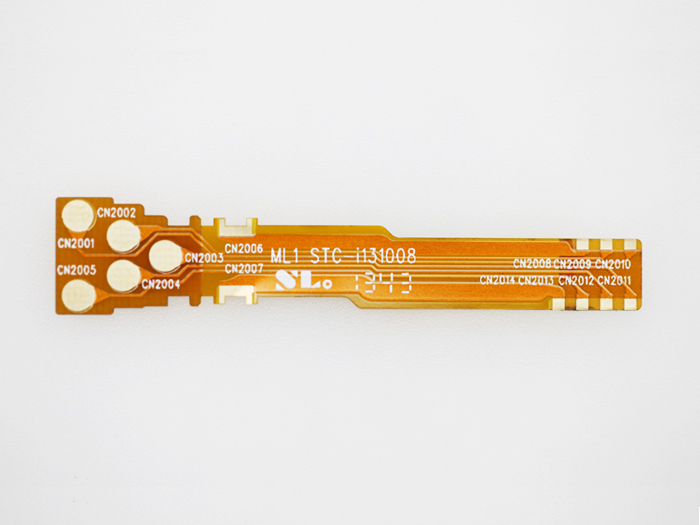 型 號:RM01C00187A層 數(shù):1板 厚:0.12mm材 料:單面有膠電解銅 厚:1/2 OZ表面處理:沉金2微英寸最小線寬/線距:0.1mm/0.08mm特 點:外形復(fù)雜