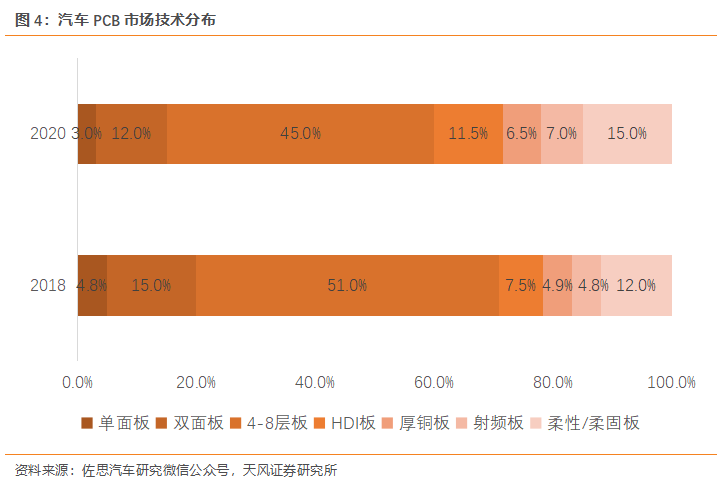 汽車(chē)軟板廠了解到,新四化下,汽車(chē)電子整車(chē)占比持續(xù)提升,汽車(chē)電子應(yīng)用中PCB為重要底座支撐,提升汽車(chē)PCB的應(yīng)用需求。