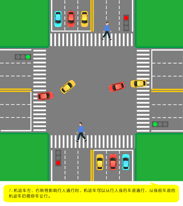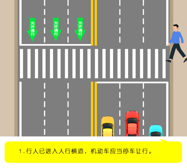 第四十七條規(guī)定,機(jī)動(dòng)車行經(jīng)人行橫道時(shí),應(yīng)當(dāng)減速行駛;遇行人正在通過人行橫道,應(yīng)當(dāng)停車讓行。機(jī)動(dòng)車行經(jīng)沒有交通信號(hào)的道路時(shí),遇行人橫過道路,應(yīng)當(dāng)避讓。
