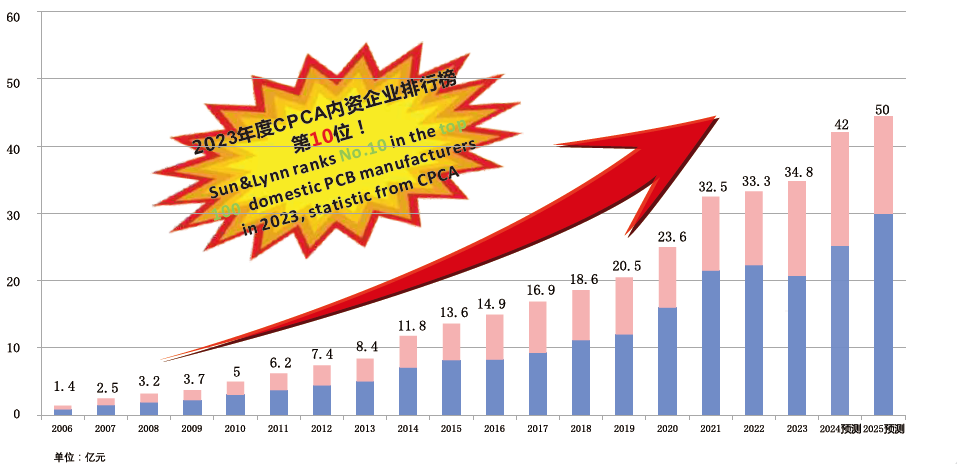 深聯(lián)電路在廣東深圳、江西贛州及廣東珠海設(shè)有三個(gè)制造基地,員工總?cè)藬?shù)5000人,自2004年起銷售額每年保持10%的增長(zhǎng),至2023年銷售額達(dá)到34.8億人民幣,在CPCA內(nèi)資百?gòu)?qiáng)線路板企業(yè)中排名第10位,已發(fā)展成為中國(guó)頗具價(jià)值的PCB制造企業(yè),為通訊、電源、新能源、安防、工控、醫(yī)療、汽車等領(lǐng)域的全球客戶提供PCB、HDI、軟硬結(jié)合板、FPC和FPCBA的一站式專業(yè)服務(wù)。