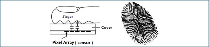 指紋識別解決方案是基于電容檢測原理而自主開發(fā)的按壓式指紋識別技術(shù),如下圖所示,當(dāng)Finger與Cover接觸時,指紋的嵴與峪與Pixel Array間會形成不同的耦合電容,驅(qū)動信號有指紋芯片的信號驅(qū)動模塊產(chǎn)生,通過檢測Finger與Sensor所形成的耦合電容,將采集的數(shù)據(jù)發(fā)送給Host,從而根據(jù)不同信號耦合量,探測到嵴和峪的位置,從而形成指紋圖像數(shù)據(jù)。