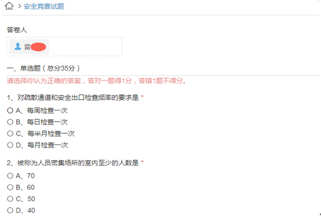 我相信再怎么難的題也難不倒學(xué)霸的你,再說了,咱們這是開卷考試,只是為了更好的普及安全知識,沒規(guī)定你不能問“度娘”?。‘?dāng)然,對于個別有針對性的問題,還是需要你對車間現(xiàn)場有一定了解才能回答。比如“公司的安全通道有幾條?”,這完全是送分題啊。