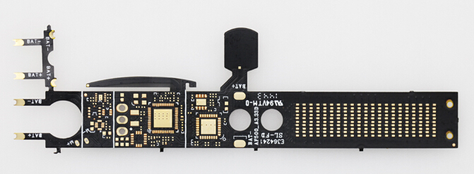 型 號:RM01C00187A層 數(shù):1板 厚:0.12mm材 料:單面有膠電解銅 厚:1/2 OZ表面處理:沉金2微英寸最小線寬/線距:0.1mm/0.08mm特 點(diǎn):外形復(fù)雜