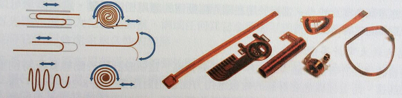 有一些聰明的方法與技術(shù),過去幾年已經(jīng)被工程師發(fā)展出來,可以讓FPC達(dá)到期待的彎折或撓曲特性。運(yùn)動的類型與范圍,從線延伸與收縮到旋轉(zhuǎn)撓曲或各種角度,從5°、10°到超過360°。圖8.27所示,為這種觀念的范例。