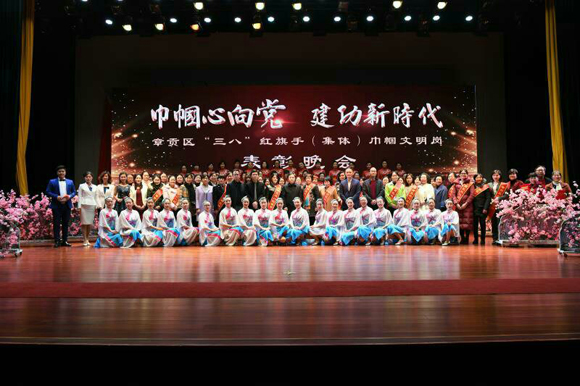 2018年3月7日晚,章貢區(qū)舉行慶祝“三八”國際勞動婦女節(jié)107周年暨“巾幗心向黨.喜迎十九大”表彰晚會。大會表彰了榮獲章貢區(qū)三八紅旗手20名、三八紅旗集體10個單位、巾幗文明崗10個單位。