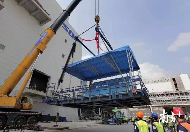 “轟隆隆……”伴隨著溫控柜開柜聲,廣州富士康第10.5代8K顯示面板全生態(tài)產(chǎn)業(yè)園(超視堺8K項(xiàng)目)首臺(tái)曝光機(jī)開始搬入,隨后由吊裝機(jī)進(jìn)行吊裝進(jìn)場(chǎng)。2月14日,園區(qū)第一臺(tái)8K高精度曝光機(jī)進(jìn)駐廣州增城工廠,設(shè)備調(diào)試將在今年6月完成,并按照原計(jì)劃在10月實(shí)現(xiàn)量產(chǎn)。