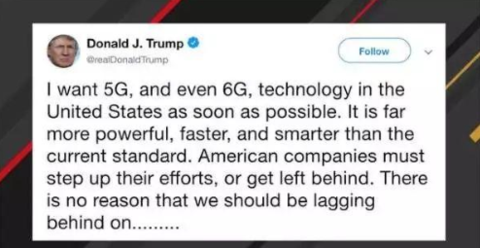 ▲“我想要5G甚至6G的技術(shù)能盡快在美國普及。 這比當(dāng)前的標(biāo)準(zhǔn)要更強(qiáng)、更快、更智能。美國公司必須加緊努力,否則就會(huì)落后。我們沒有理由落后……”