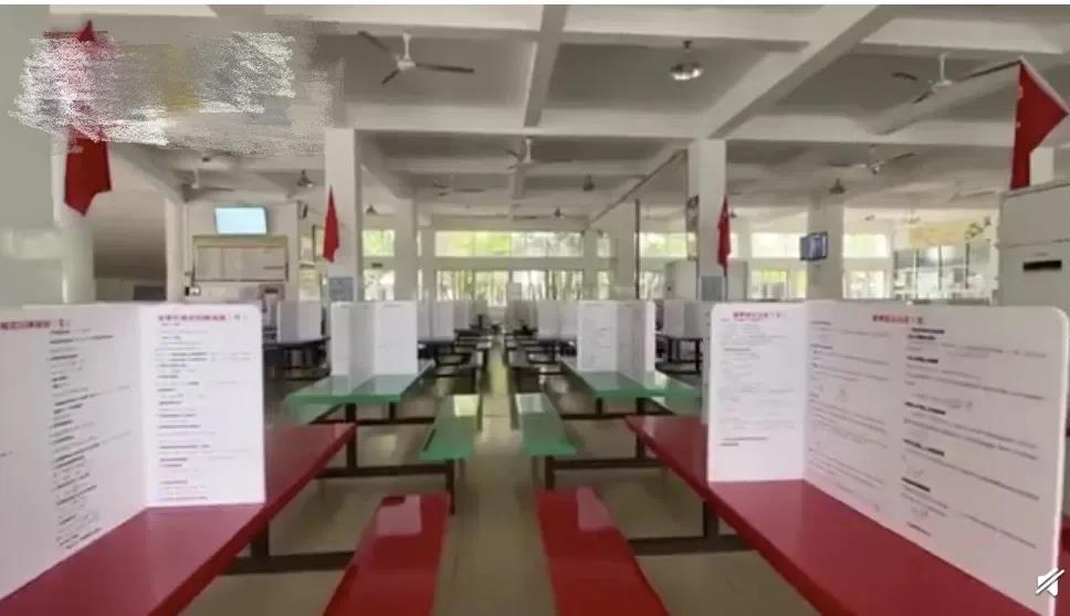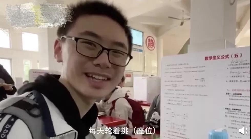 請注意這可不是普通的隔板,上面滿屏都是高考知識點!該校老師介紹,這里每個學(xué)科都有,語數(shù)外較多,物化生政史地則按比例平均分配。有的同學(xué)表示這種隔板非常好,每天吃飯都輪著挑座位。