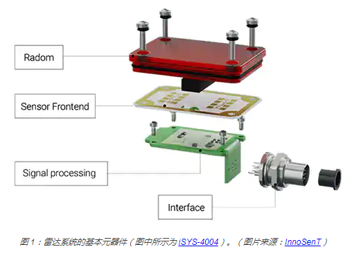 雷達(dá)傳感器由前端 (RFE)(具有天線結(jié)構(gòu)的微波部件)和用于信號(hào)處理的元器件組成。前端是雷達(dá)的實(shí)際核心,因?yàn)樗翘炀€發(fā)射和接收電磁信號(hào)的部位。為了解讀收集到的信息,前端會(huì)將其轉(zhuǎn)發(fā)給信號(hào)處理單元(圖 1)。
