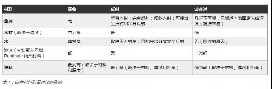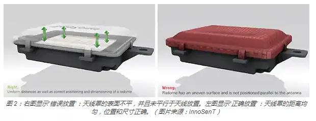 雷達(dá)波必須能夠穿透天線罩。金屬會(huì)對(duì)雷達(dá)傳感器造成屏蔽。由于具有高反射特性,因此金屬不適合放在天線前方。木鑲板(通常有一定的殘留濕度)也不適合,因?yàn)殡姶挪▽?duì)它的穿透力有限。