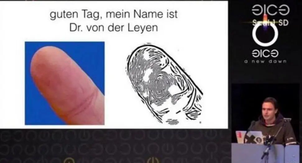 在 2014 年的活動(dòng)演示中,他所使用的圖片,是馮德萊恩出席新聞發(fā)布會(huì)的現(xiàn)場(chǎng)圖片,照片中的她豎起了右手大拇指,Jan Krissler 借此照片,配合一臺(tái) Verifinger 掃描設(shè)備復(fù)制出部長(zhǎng)的完整指紋。Jan Krissler 并不想利用這種技術(shù)作惡,反而希望以此喚醒大眾對(duì)指紋安全的警惕無(wú)獨(dú)有偶,日本國(guó)立情報(bào)學(xué)研究所 (NII) 的科學(xué)家在 2017 年成功從一張三米開(kāi)外拍攝的照片中,提取出可用的指紋,如今的手機(jī)攝像頭動(dòng)輒幾千萬(wàn)像素,所拍相片的清晰程度遠(yuǎn)比當(dāng)年要高,顯然要從相片中收集到清晰的指紋并非難事。