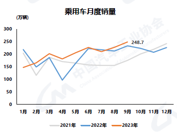 9月,乘用車產(chǎn)銷分別完成249.6萬(wàn)輛和248.7萬(wàn)輛,環(huán)比分別增長(zhǎng)9.7%和9.4%,同比分別增長(zhǎng)3.5%和6.6%。在乘用車主要品種中,與上月相比,四大類車型產(chǎn)銷均呈不同程度增長(zhǎng);與上年同期相比,運(yùn)動(dòng)型多用途乘用車(SUV)產(chǎn)銷呈兩位數(shù)增長(zhǎng),多功能乘用車(MPV)產(chǎn)量下降、銷量增長(zhǎng),基本型乘用車(轎車)和交叉型乘用車產(chǎn)銷呈不同程度下降。