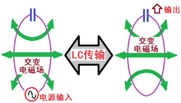 圖中的能量以磁場(chǎng)形式進(jìn)行無線傳輸,相當(dāng)于一個(gè)隔離變壓器實(shí)現(xiàn)了無線充電,形成電源發(fā)送端和能量接收端。