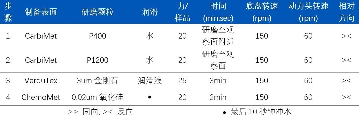 為了確保足夠的研磨時間,可在每步結(jié)束后在顯微鏡下觀察樣品表面。